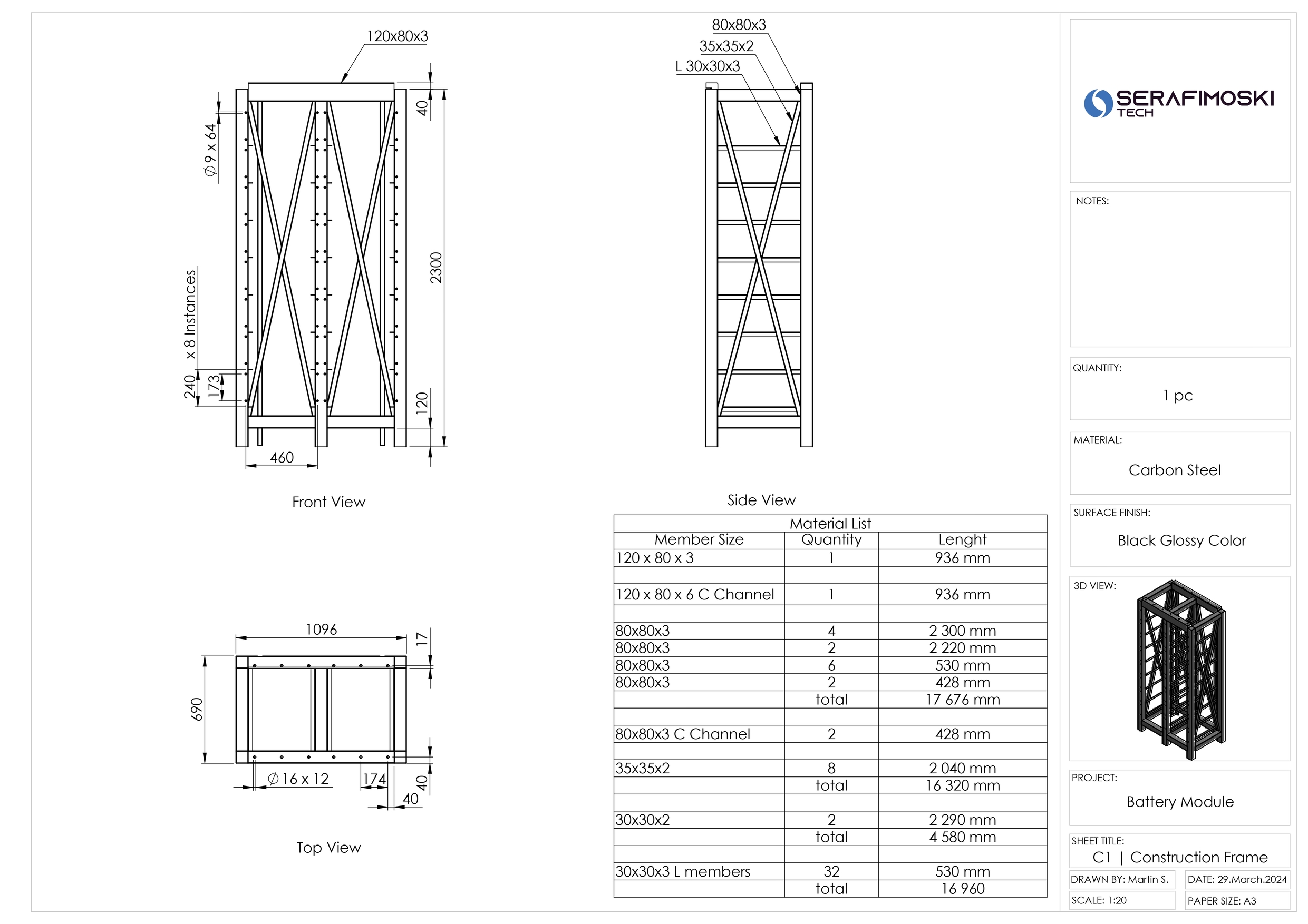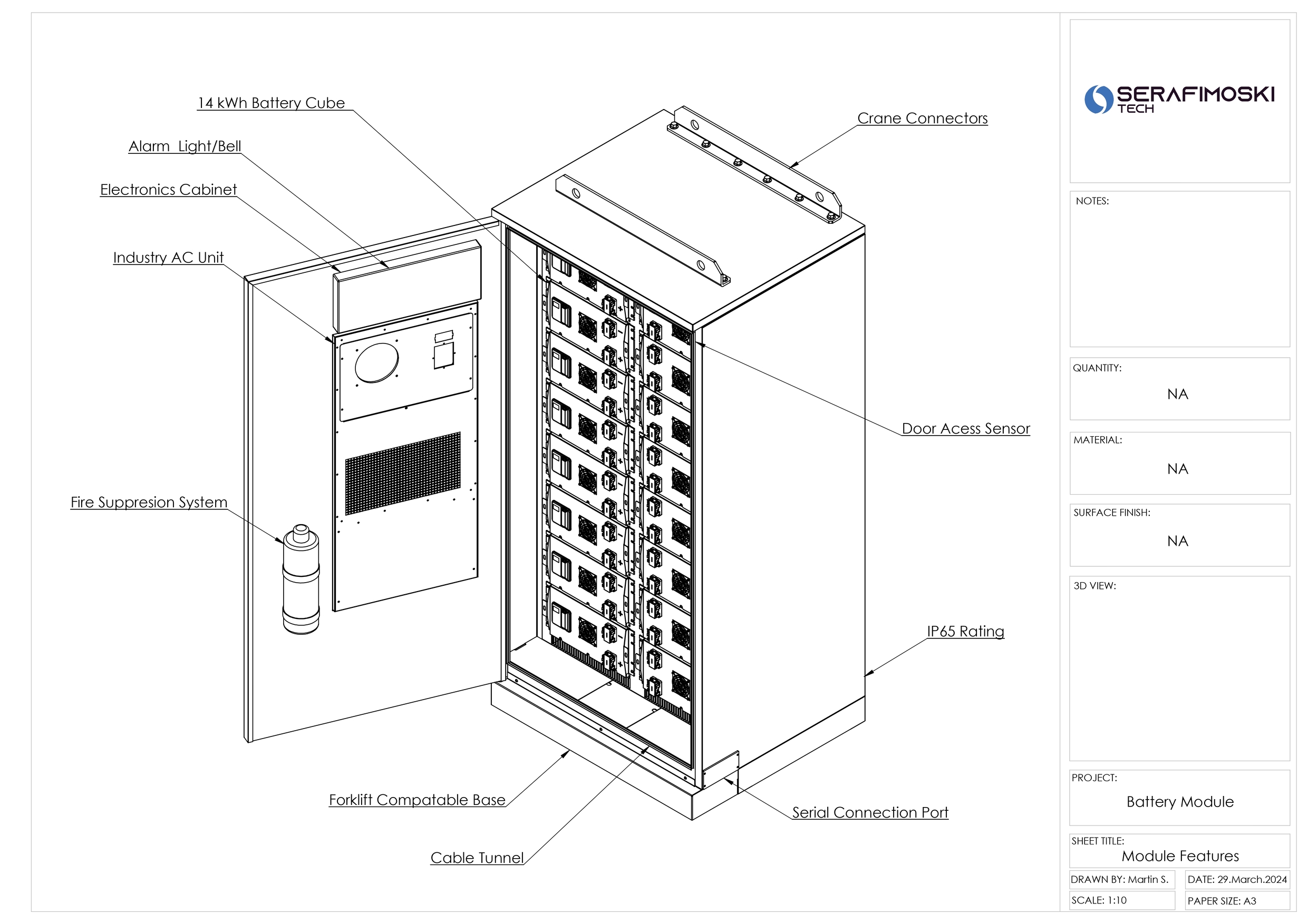 High performance battery module, developed for the needs of the industry manufacturing plants and EV charging stations. Modular construction which enables customization to fit the client's needs each time. Equipped with industrial AC unit and weather resistant construction, able to be installed indoors and outdoors.
