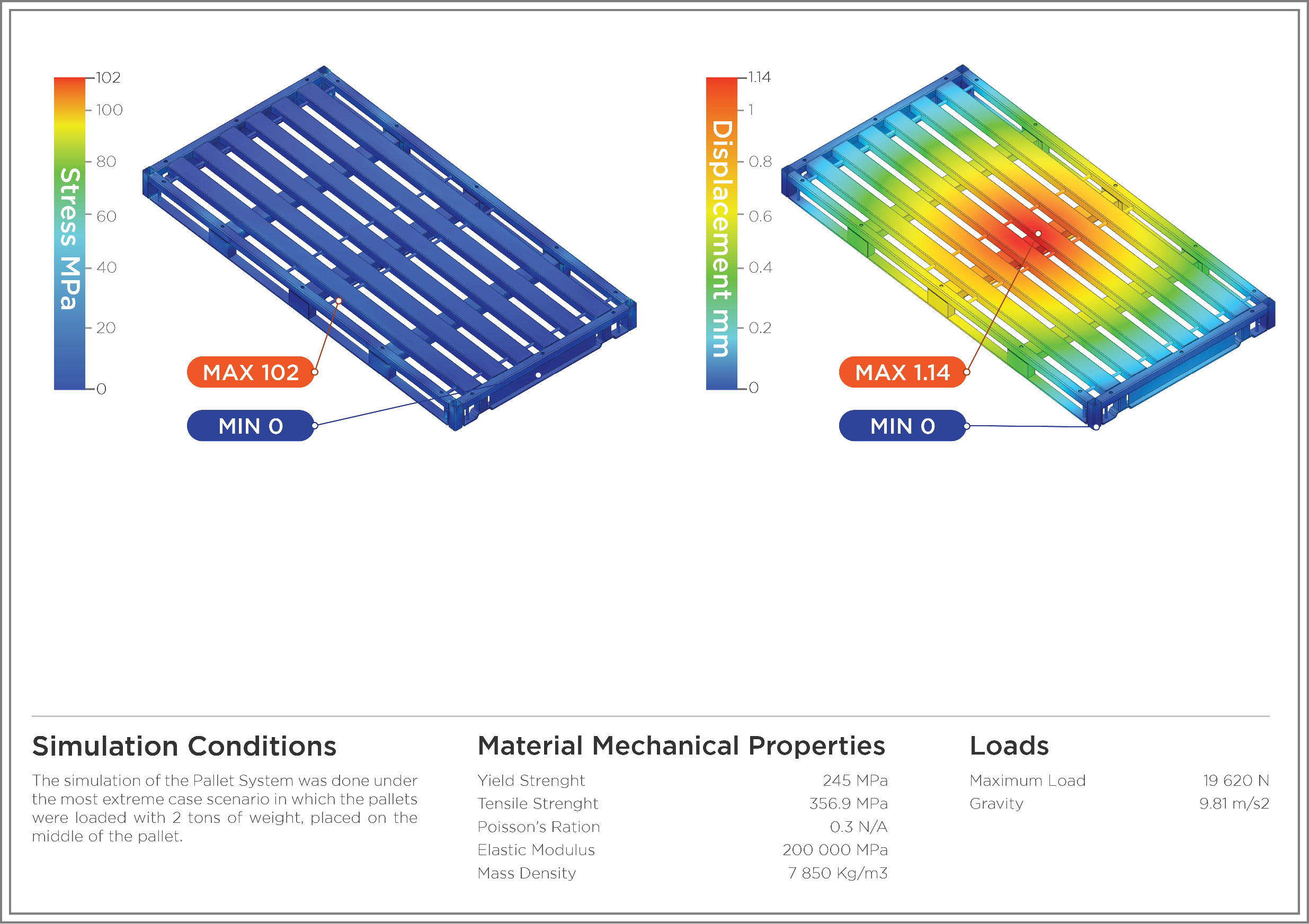 Hiight quality and durable steel pallets with supreme performances. Developed for the high demanding enviroments of the Military, Construction and Mining Industries. Capable to be upgraded with large variety of modules, delivering every demand.