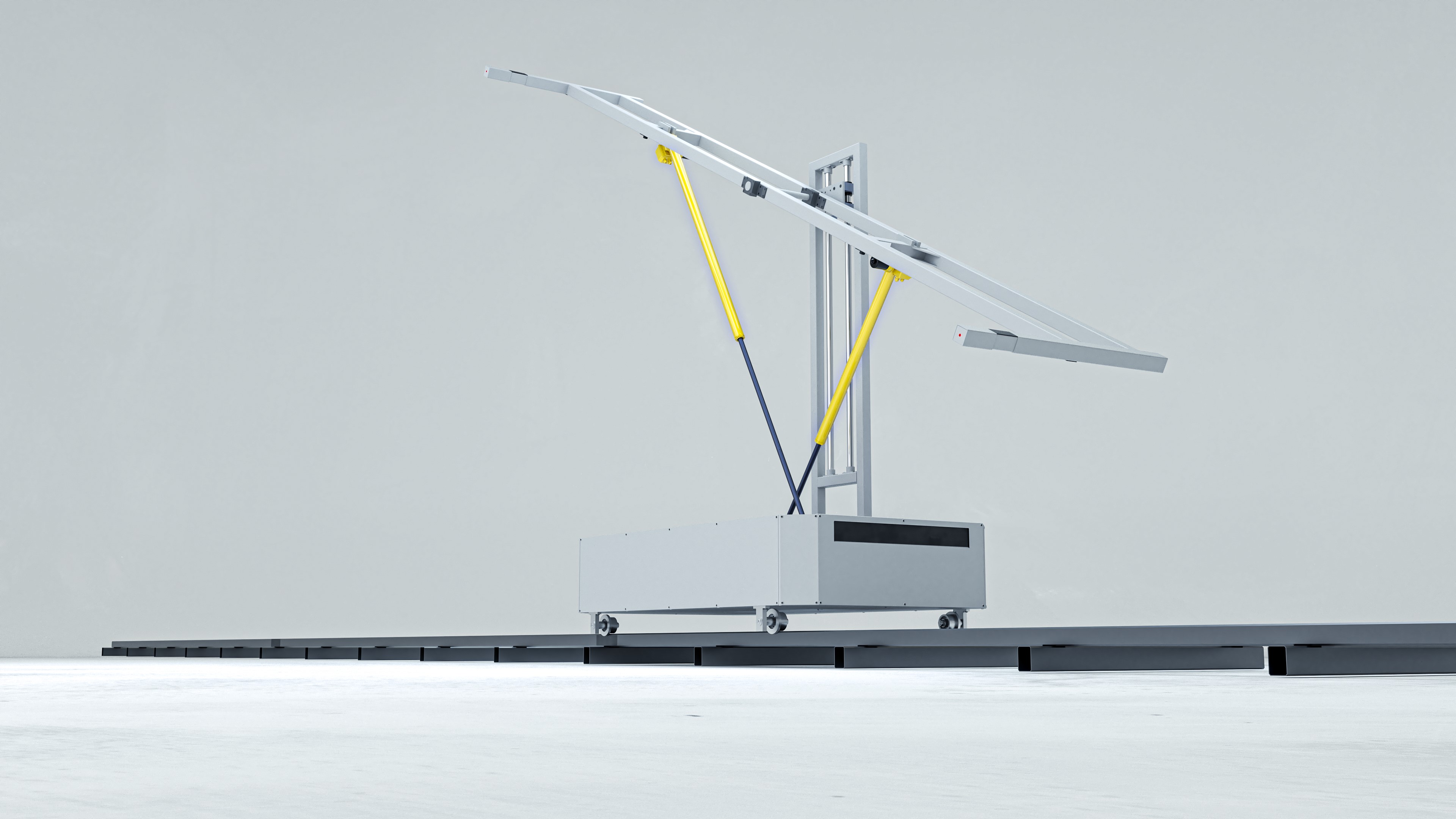 Transporter for robotic solar panel cleaner, truly first of its kind. Autonomous transportation operation of the cleaner from one array of solar panels to the next, singlehandedly reducing the cost of the whole solar plant. Modular design developed to withstand the most extrime sand storms.